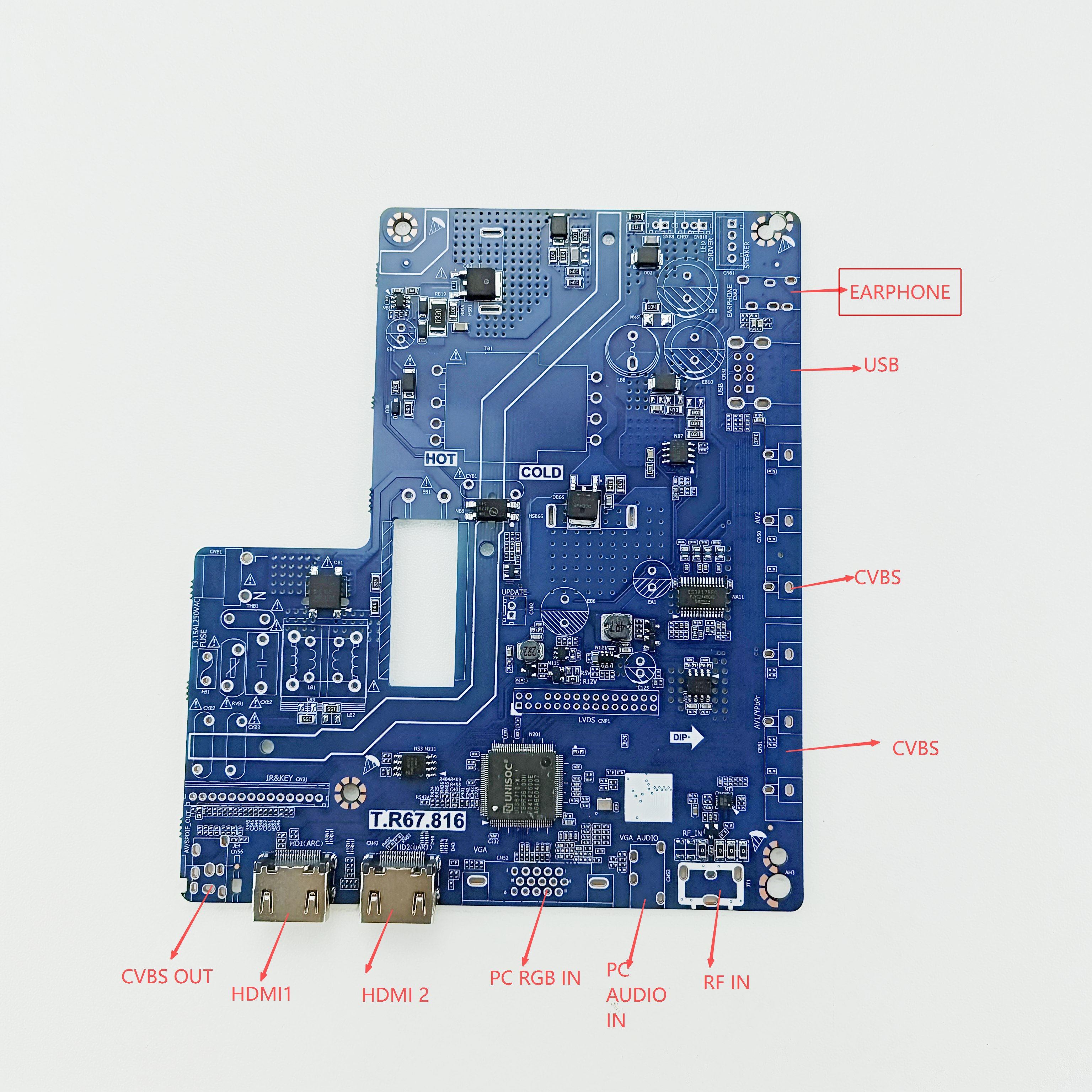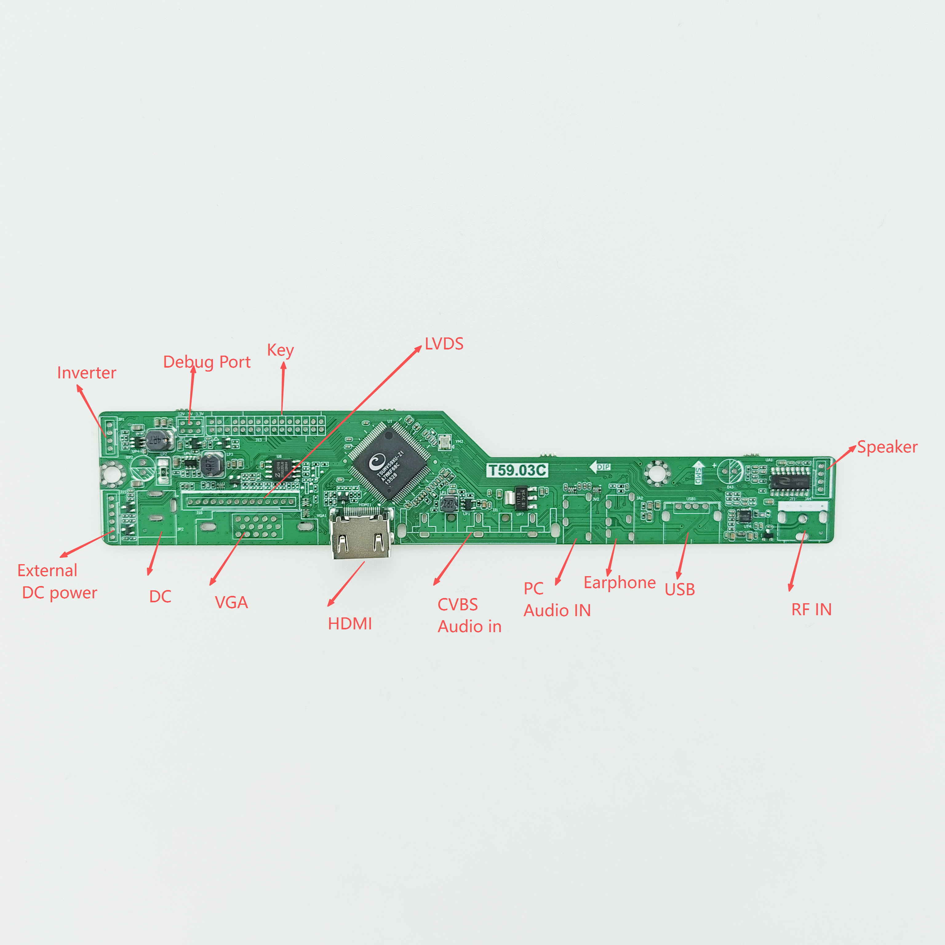 Full BOM electronic materials: Main chips, DDR memory, flash memory, resistors, capacitors, HDMI/USB/Ethernet ports, key panels, receivers, cables, heat sinks and more
